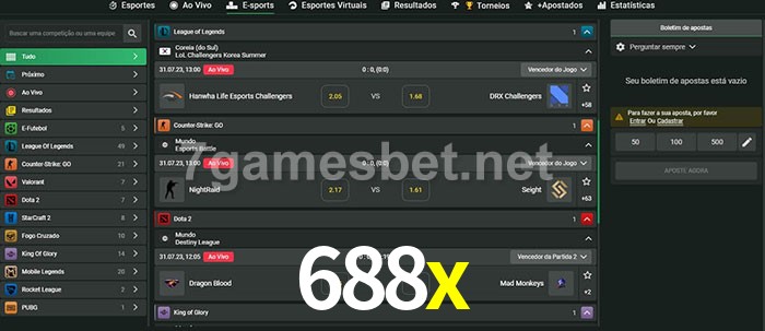 A aposta 688x oferece aos jogadores a experiência mais conveniente de apostas em eSports!